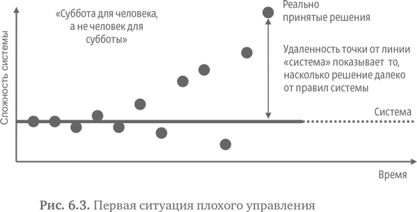 1. Размываем систему: вместо ее усложнения вводим все больше и больше внесистемных исключений ad hoc в соответствии с принципом «суббота для человека, а не человек для субботы» и тем самым по сути убиваем систему (рис. 6.3).