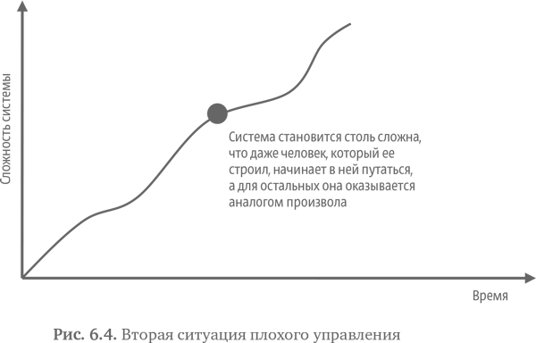 3. Доводим систему до абсурда: отказываемся признать, что она уже стала неподъемной, и продолжаем ее развивать и усложнять – живем, сохраняя иллюзию системности, хотя реально это уже тришкин кафтан. При этом уже никто не понимает систему, и принятые в соответствии с ней решения выглядят столь же произвольными, как и решения ad hoc (рис. 6.4).