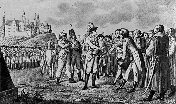 Сдача Краковского замка А.В. Суворову. 1772 г. Гравюра XVIII в.