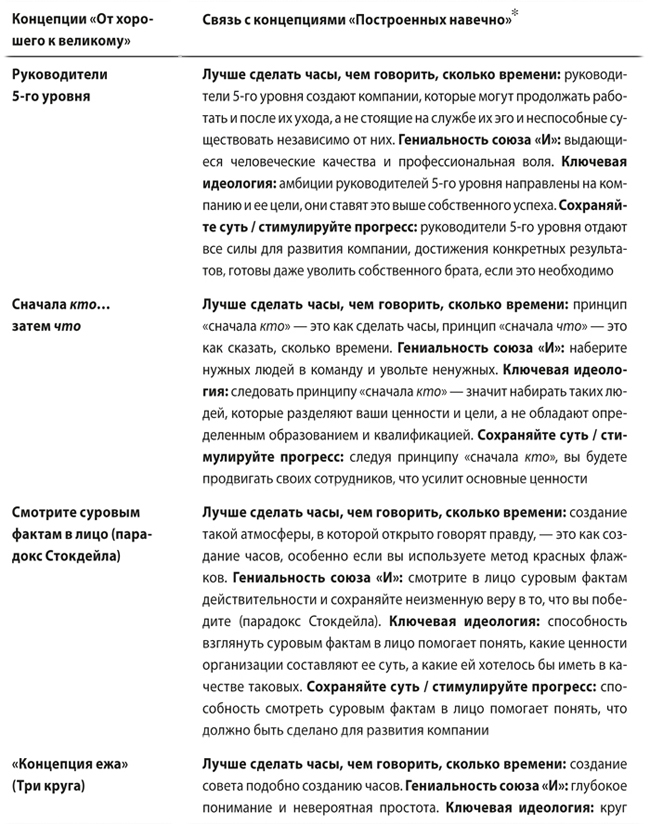 Таблица 9.1. От «От хорошего к великому» к «Построенным навечно»