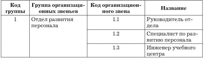 После формирования классификаторов строится матричная проекция, т. е. функции закрепляются за организационными звеньями, по строкам указываются организационные звенья, а по столбцам – функции. Закрепив функции за конкретными исполнителями, на выходе получаем функциональные обязанности сотрудников кадровой службы.