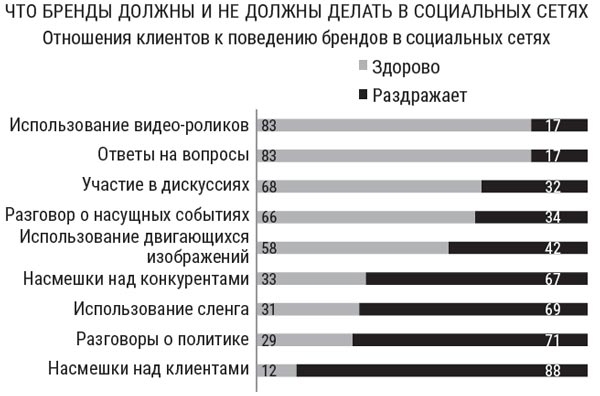 Рис. 10. Что бренды должны и не должны делать в социальных сетях. Реакция потребителей на поведение брендов в соцсетях