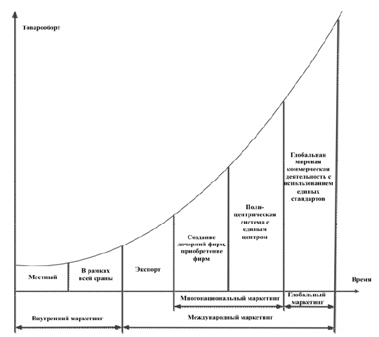 Рис. 1.2. Этапы развития маркетинга в процессе глобализации по Е.П. Голубкову