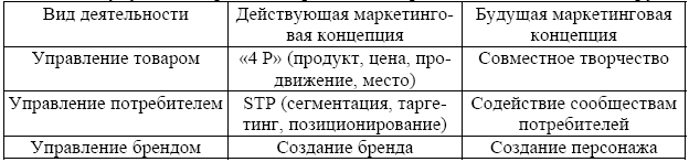 В развитии маркетинга 3.0 Ф. Котлер определяет будущие направления изменения традиционных инструментов маркетинговой деятельности (табл. 1.3). Так, управление товаром, которое сейчас понимается как разработка предприятием комплекса маркетинга, в будущем будет осуществляться на основе совместного с потребителями творчества; управление потребителями, осуществляемое в настоящее время на базе STP-анализа[12], превратиться в содействие сообществам потребителей; бренд-менеджмент будет заключаться в создании аутентичных, вызывающих у потребителей доверие, персонажей[13] – носителей идеологии бренда. Такое тесное взаимодействие между предприятиями и потребителями, зачастую разделенными друг от друга тысячами километров, возможно только на основе информационных технологий.