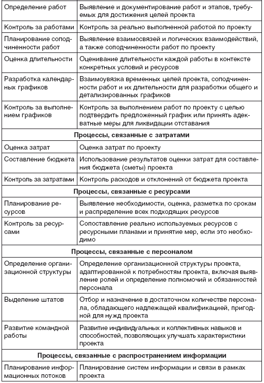 4) типу в проекте: процессы управления проектом, процессы реализации проекта (технологические).