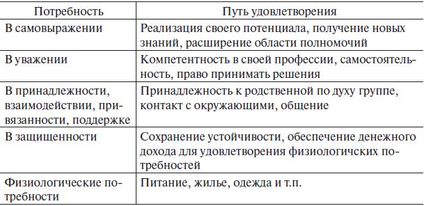 Таблица 10.1. Система потребностей личности по А. Маслоу