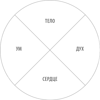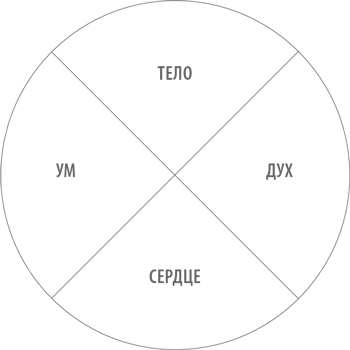 Используя это «шаманское колесо», постарайтесь определить, какие из ваших повседневных занятий относятся к каждой из четырех сторон вашей личности – уму (интеллекту), телу, сердцу (эмоциям) и духу.