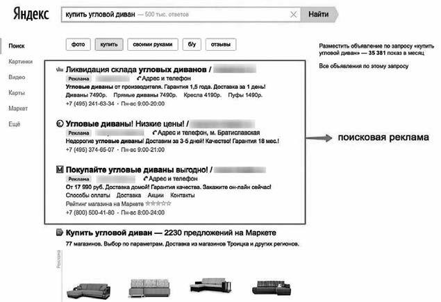 Поисковая реклама подразумевает показ рекламных объявлений в ответ на запрос пользователя в поисковике. Запросы мы будем называть ключевыми фразами или – на сленге рекламщиков – ключевиками. Для поисковой рекламы собирается большое количество запросов, которые вводят пользователи по заданной теме, и для каждого запроса прописываются объявления.