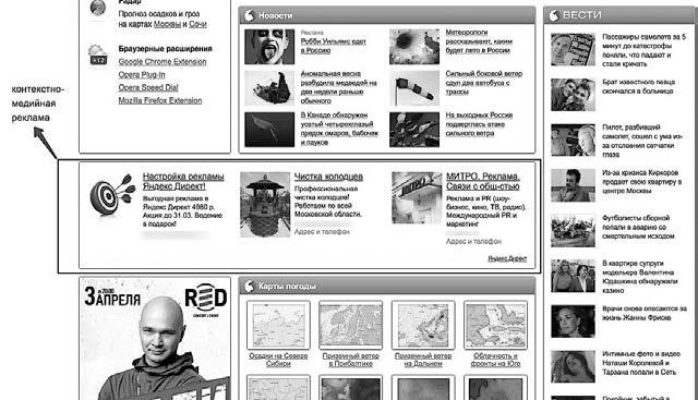 Контекстно-медийная реклама – объявления на сторонних сайтах-партнёрах поисковых систем. Их видят те, кто ранее интересовался данной тематикой в поисковой системе (ты наверняка замечал такое: ищешь в Яндексе ноутбук, и он начинает преследовать тебя везде). Также объявления показываются в контексте тематики конкретного сайта. К примеру, на блоге о туризме могут появляться объявления, призывающие поехать отдохнуть. Это контекстная реклама в изначальном её виде: она соответствует контексту, который её окружает.
