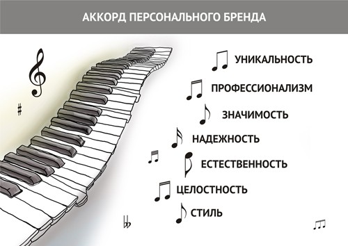 Поскольку я музыкант, мне близки музыкальные сравнения: тональность, или краску, вашего персонального бренда будут определять лад и наличие ключевых знаков. Маркетинг как наука давно уже сформировал в течение многих лет успешно применяемые в бизнесе идеи и принципы, которые чудесно адаптируются к области формирования персонального бренда. Но их, знаете, как в музыке семь нот, ограниченное количество. Наличие неких звуковых отношений объединяет их в соподчиненную систему, которая у каждого из нас уникальна.