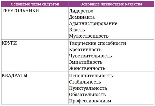 Безусловно, силуэт мы всегда выбираем от особенностей фигуры, но нужно понимать, что окружающие нас люди и по нему могут считывать информацию о нас. Несколько слов о психологии силуэта. Условно выделяют несколько основных типов силуэта – треугольник, круг и квадрат. Люди еще в древности заметили, что разные формы геометрических фигур производят на нас разное впечатление. И выбор их также свидетельствует о нашей разности.
