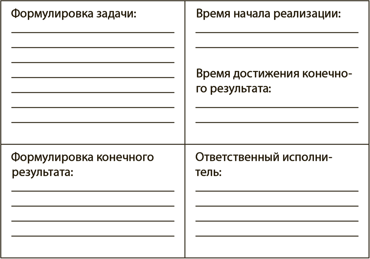 1.-Полоса бумаги («лист») длиной примерно 3,5–4 метра и шириной в метр, применяемая для широкоформатной печати. Команды, каждая на своем листе, будут заполнять таблицу, дающую наглядное представление об этапах и элементах процесса рыночного продвижения (см. ниже). Листы крепятся малярным скотчем на стену.