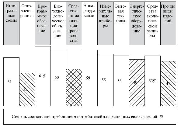 Рис. 5.24. Степень соответствия требованиям потребителя для разных видов изделий