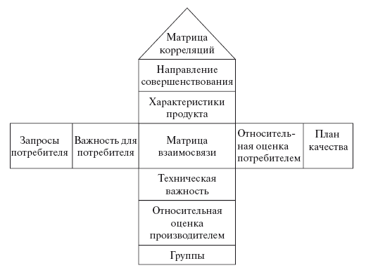 «Домик качества» – вид таблицы, представленной на рис. 5.25. В настоящее время для заполнения таких таблиц применяются специальные программные продукты. Одним из самых распространенных продуктов является QFD Designer.