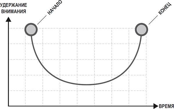 ? Повествования, которые воздействуют на мозг, привлекают внимание в начале и в конце каждого сегмента.