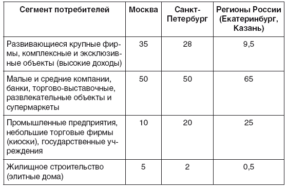 2) малые и средние компании, банки, торгово-выставочные, развлекательные объекты и супермаркеты (наиболее многочисленный сегмент);