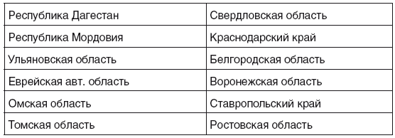 • вторая группа включает четыре региона: Московскую область, Еврейскую автономную область, Ульяновскую область, Республику Мордовия.