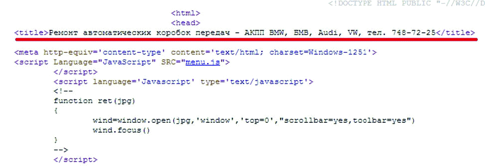 Теперь посмотрим, как выглядит TITLE в исходном коде