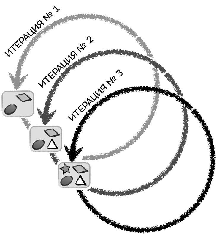 Рис. 3.1. Команда использует итерации для частой доставки работающего программного обеспечения, добавления новых функций с каждым релизом