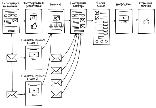 Из каких нот и по каким принципам составлена автовебинарная воронка? Вот эта схема:
