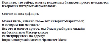 Смотрели ли вы уже когда-либо вебинары, они же мастер-классы онлайн? Если нет, то скорее заходите на сайт www.mariyasolodar.com и выберите там любой из них для ознакомления.