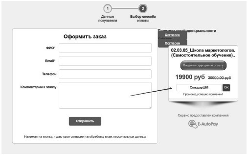 После успешной регистрации с помощью автопродавца на странице благодарности пользователю предлагается приобрести трипваер – курс по построению воронок продаж.