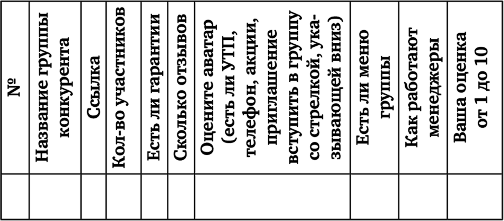 Сразу станет ясно, задают ли менеджеры вопрос в конце каждого сообщения, отправляют ли фотографии товара во всех ракурсах, пользуются ли смайликами или пишут, как роботы, могут ли правильно обработать возражение («дорого», «подумаю», «закажу чуть позже» и так далее). После этого напишите в колонке каждого конкурента свое впечатление от общения с ними. Уверены: после этого вы увидите, что можете работать во много раз лучше, чем они!