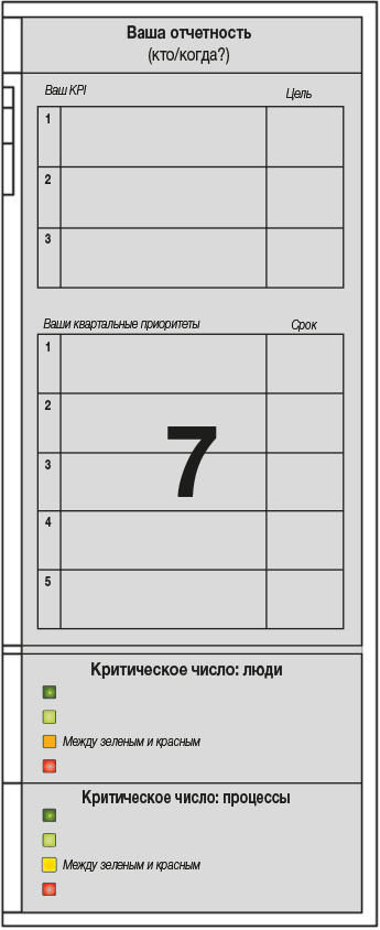 2. Ваши квартальные приоритеты: приоритеты каждого сотрудника (помимо основных трудовых обязанностей), помогающие улучшить его производительность или участие в специальных проектах, а также соответствующие его критическому числу и главному приоритету компании.