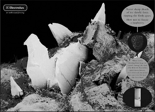 А вот результат еще одной устрашающей макросъемки. На этот раз – для рекламы холодильника (рис. 38). Мы видим, как острые кристаллики льда прорывают нежную плоть малины в процессе охлаждения.