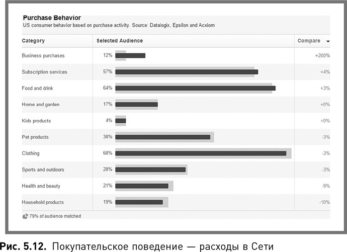 В целом расходы в Сети находятся на среднем уровне, притом что количество людей, совершающих покупки таким способом, несколько меньше среднего (рис. 5.12).