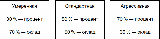 Возникает вопрос, какое установить соотношение между окладом и процентом. Стандартно выделяют три модели, представленные на рис. 8.2.