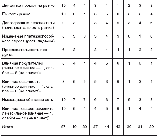 общей заинтересованности всех служб предприятия в завоевании доли рынка. Для этого лучше всего сформировать группу из наиболее квалифицированных работников, которые вместе с руководством предприятия смогут провести такого рода анализ. В случае, если члены группы расходятся в оценках, в таблицу вносится среднее значение переменной, определяемое с учетом мнения каждого.