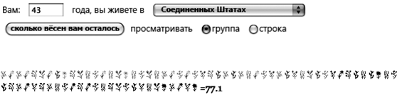 Как-то давно я написал простую программку для Интернета: вы вводите данные о своем возрасте, и она показывает, сколько вёсен вам осталось встретить, основываясь на средней продолжительности жизни в стране.