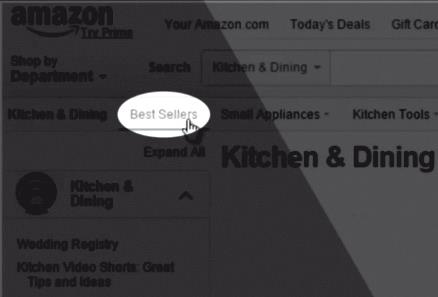 Наберите этот URL адрес www.amazon.com/Best-Sellers/zgbs в браузере, и вам сразу откроются самые продаваемые продукты во всех категориях.