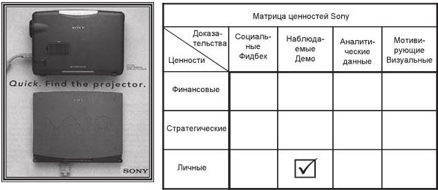 Обратите внимание, что на рис. 7.2 Sony обозначили личные ценности небольшого проектора: сложно отличить, где ноутбук, а где проектор! Когда эта реклама была в ходу, около 20 лет назад, большинство проекторов были громоздкими и тяжелыми.