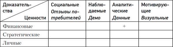 Прошу вас обратить внимание на то, что матрица ценности приводит доказательства в убывающем порядке силы действия. Первый тип доказательств – показания клиентов – представляет собой самое убедительное доказательство, в то время как внешнее доказательство – визуальное – является самым слабым типом, поскольку требует установления доверительных отношений с аудиторией. Люди должны верить вам на слово.