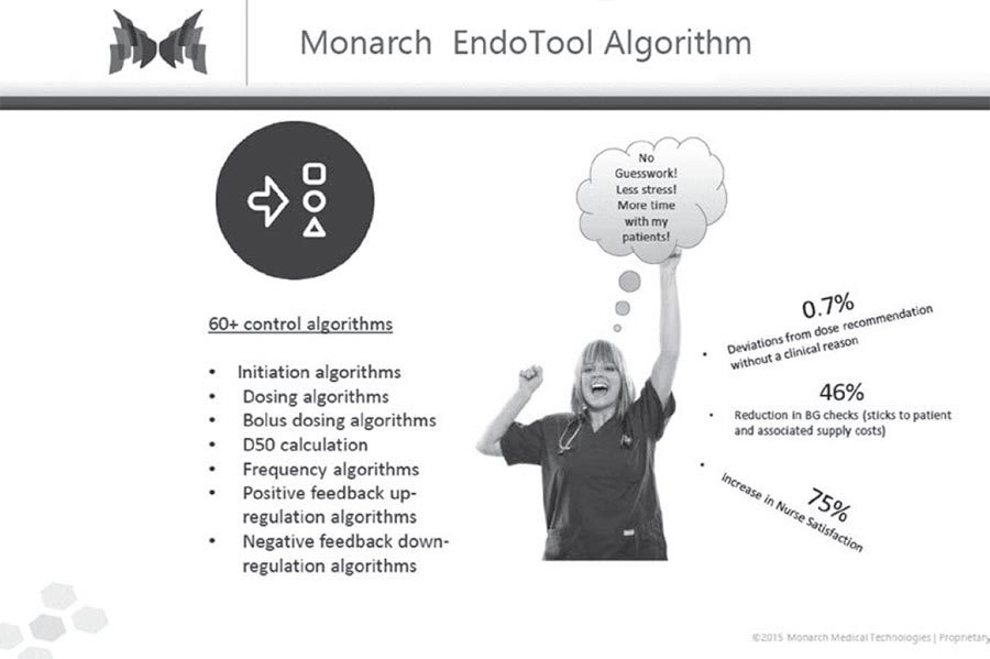 Monarch Medical Technologies разработали инновационное программное обеспечение для контроля уровня глюкозы у пациентов, страдающих диабетом. Обратите внимание, как они использовали данные, чтобы подчеркнуть проблемы медсестры, которая заботится о своих пациентах (первый слайд (рис. 7.5)).