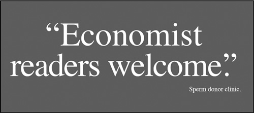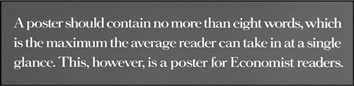Рис. 144. Плакат должен содержать не более восьми слов – столько, сколько способен усвоить средний читатель с одного взгляда. Однако этот плакат – для читателей Economist