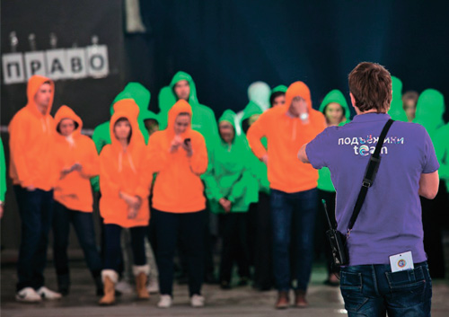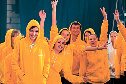 Апрельским утром 200 сотрудников в футболках цветов бренда собрались на закрытой площадке, которую мы арендовали недалеко от офиса компании. После репетиций под руководством режиссера сотрудники в сложной постановочной композиции выстраивались в буквы фразы «СВЯЗНОЙ – ЭТО МЫ». Три часа непрерывной репетиции и столько же – съемок. Как и планировалось, видео о мероприятии было размещено на YouTube. Мы, конечно, надеялись, что это вызовет интерес. Но то что сразу после публикации у нас появятся подражатели, и школьники московской школы снимут видео в нашем стиле, – вот это стало настоящим сюрпризом!