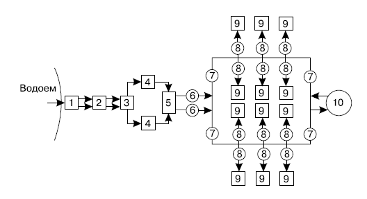 Рис. 3.2. Принципиальная схема организации водоснабжения города из поверхностного источника