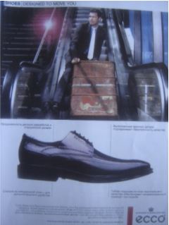 Интересно, что в приведенном примере рекламируемый объект также представлен с точки зрения приносимой адресату пользы: обувь снова оказывается средством достижения желаемого статуса в обществе и получения общественного признания.