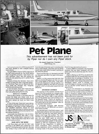 Я заплатил за него 240 000 долларов, и все говорили, что теперь он стоит в лучшем случае 190 000 долларов. Я не мог поверить, что этот замечательный самолет так сильно упал в цене, а поэтому решил дать объявление в журнале частных пилотов AOPA Pilot и выяснить, смогу ли я выручить за него ту сумму, которую назначил.