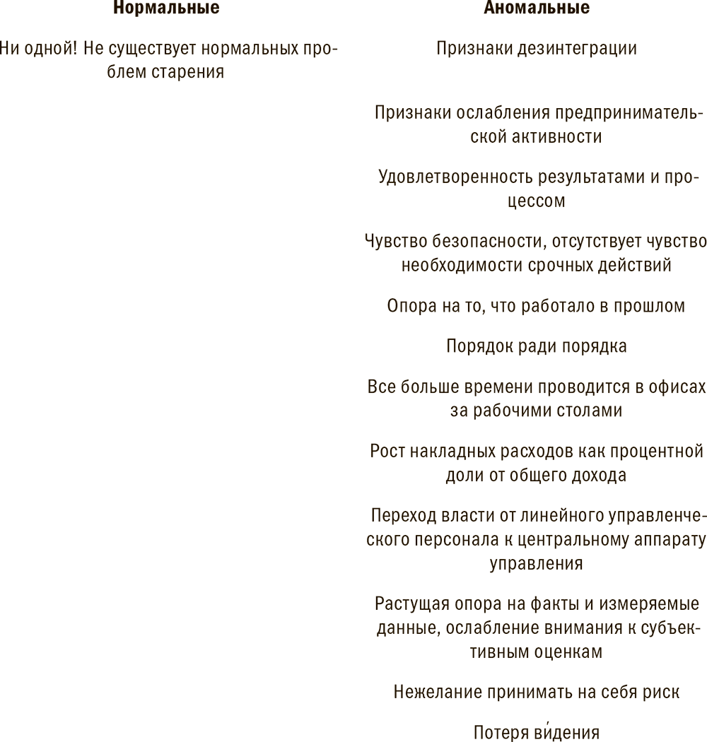 Задача организации, достигшей Расцвета, – удержаться в этом состоянии. Если организация не делает того, что она должна для этого делать, то такая ошибка превращается в аномальную, а в итоге и в патологическую проблему.