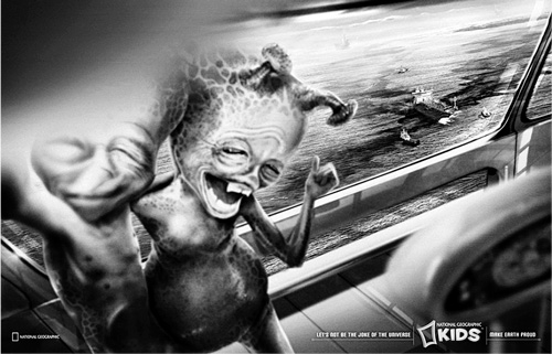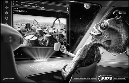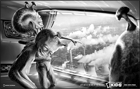 Телевизионный ролик поддерживался рекламой в прессе (рис. 159–161). Мерзкие, отвратительные гуманоиды с интеллектом головастиков насмехаются над землянами. Хохочут над тем, как мы портим свой воздух. Как вырубаем реликтовые леса. Как проливаем в океанах нефть на тысячи и тысячи километров.