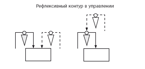 Для построения логичной системы самоуправления нам был полезен рефлексивный контур «анализ – моделирование – регулирование», известный из кибернетики и описывающий любые процессы управления. Сейчас мы немного усложним схему и рассмотрим взаимодействие двух рефлексивных контуров – руководителя и подчиненного.