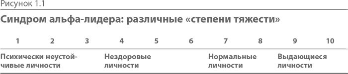 В зависимости от индивидуальных особенностей альфа-лидеров, «заболевание» может протекать с различной степенью тяжести. Крайние случаи – это, с одной стороны, люди с тяжелыми психическими расстройствами и, с другой стороны, прекрасные, благородные личности. Между этими полюсами располагаются более или менее нормальные люди. На одном конце спектра – просто-таки олимпийский пантеон: великие политики, гиганты промышленности и титаны благотворительности, деятели культуры, отважные полководцы и добродетельные отцы семейств. Среди них Джордж Вашингтон, Уинстон Черчилль и Мартин Лютер Кинг. На другом конце – тираны и деспоты, воры и мошенники, разбойники и варвары – Чингисхан, Сталин, Саддам Хусейн и им подобные.