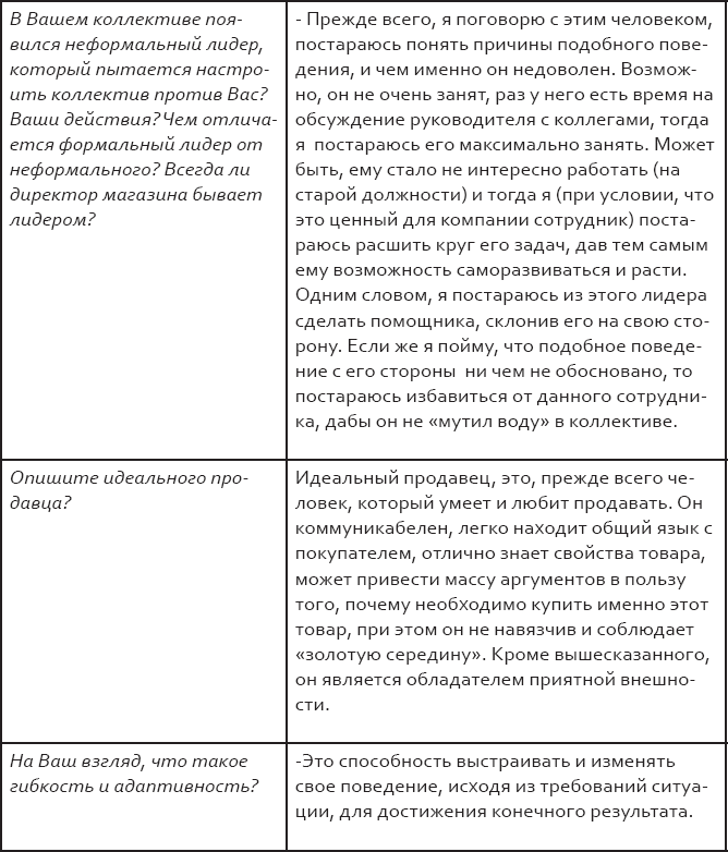 Какие еще вопросы стоит задать кандидату на позицию директор магазина?