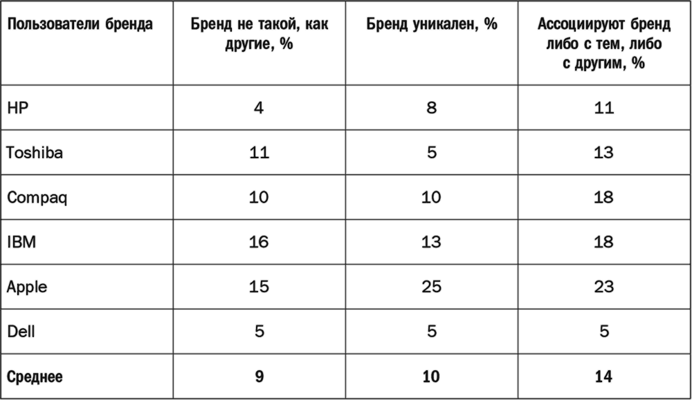 Таблица 8.4. Как воспринимают дифференциацию пользователи компьютерных брендов
