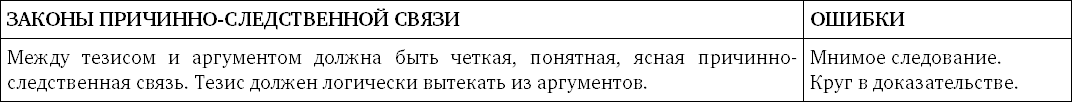 Теперь давайте рассмотрим третью составляющую аргументации – логическую связь между тезисом и аргументом. Напомню, что в теории аргументации она часто называется «демонстрация». Для причинно-следственной связи действует только один закон. Поскольку речь идет о связи тезиса с аргументами, то этот единственный закон можно сформулировать так: