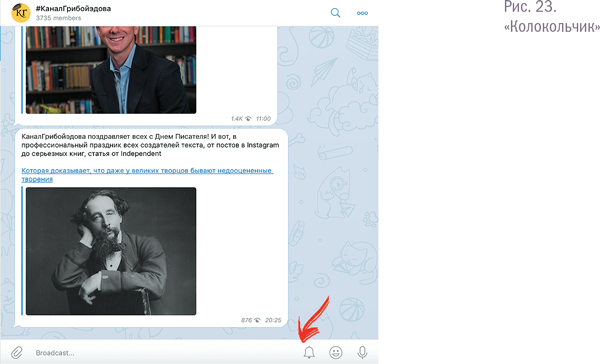Значок «колокольчик» находится на поле введения текста справа. Нажмите на него, и пост, который вы добавляете, попадет в ленты подписчиков без звукового уведомления. Однажды я вывесил пост ночью, забыв нажать на колокольчик, после чего несколько человек отписались. Что же, имейте в виду и не повторяйте моих ошибок.